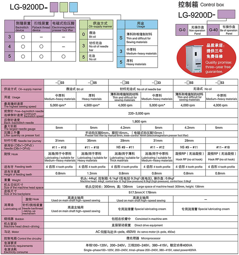 LG9200D 干機頭直驅(qū)電腦平縫機系列