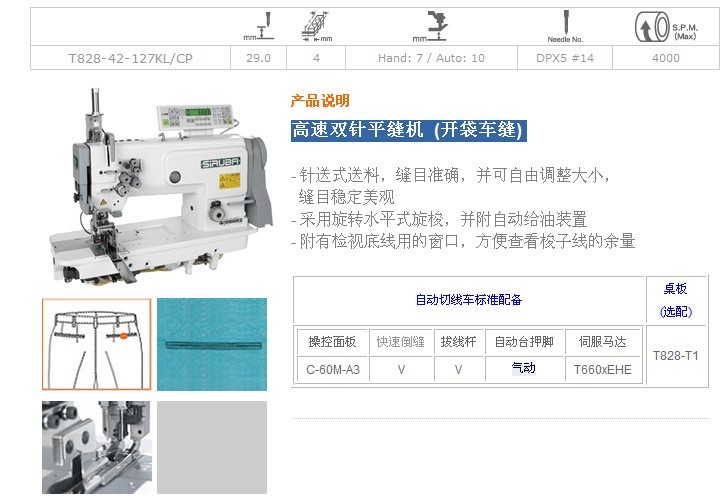 T828-42-127KL/CP 高速雙針平縫機 (開袋車縫)