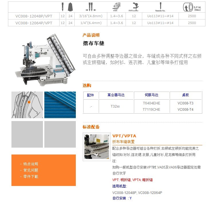VC008-12048P/VPT,VC008-12064P/VPT 摺布車縫