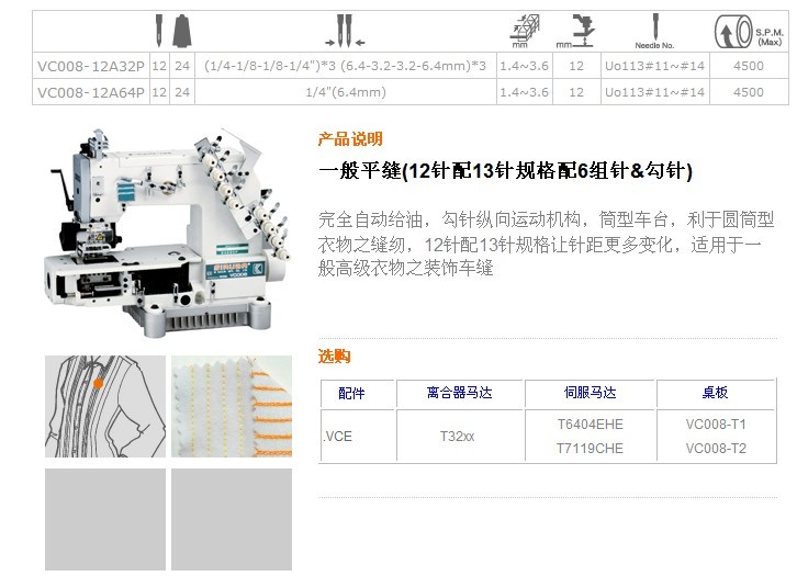 VC008-12A32P,VC008-12A64P 一般平縫(12針配13針規(guī)格配6組針&勾針)