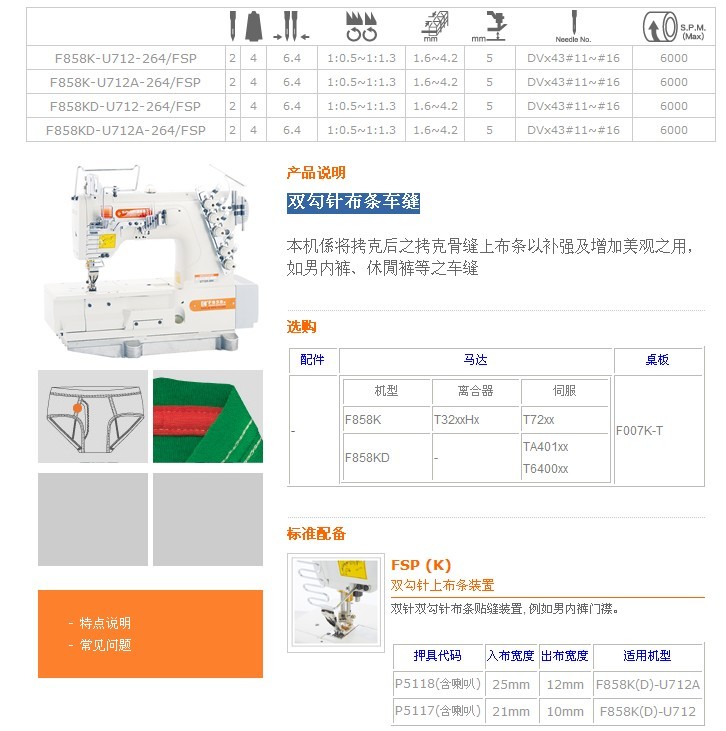 F858K-U712-264/FSP,F858K-U712A-264/FSP,F858KD-U712-264/FSP,F858KD-U712A-264/FSP 雙勾針布條車縫