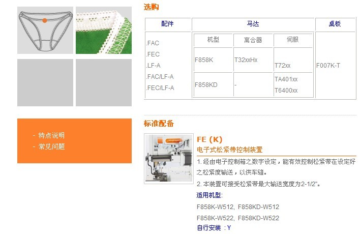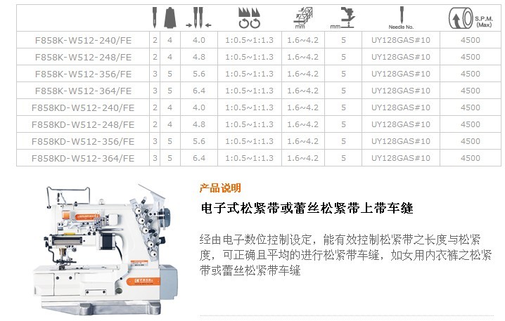 F858K-W512,F858KD-W512 電子式松緊帶或蕾絲松緊帶上帶車縫