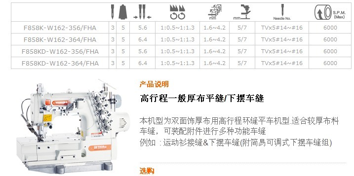 F858K-W162,F858KD-W162 高行程一般厚布平縫/下擺車縫