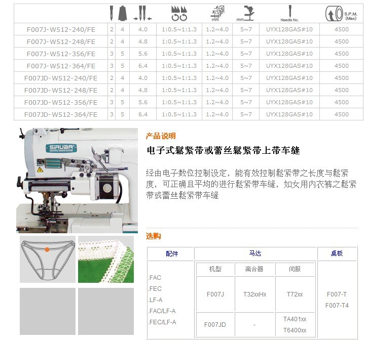 F007J-W512,F(xiàn)007JD-W512 電子式鬆緊帶或蕾絲鬆緊帶上帶車縫