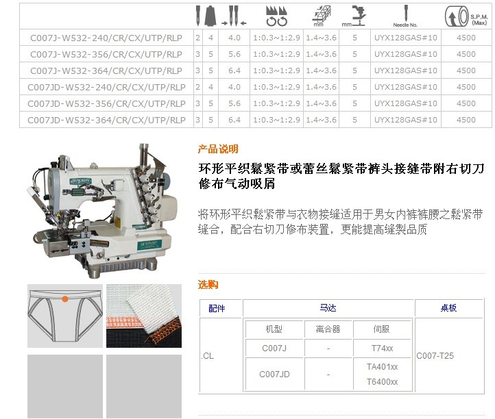 C007J-W532,C007JD-W532 環(huán)形平織鬆緊帶或蕾絲鬆緊帶褲頭接縫帶附右切刀修布?xì)鈩?dòng)吸屑