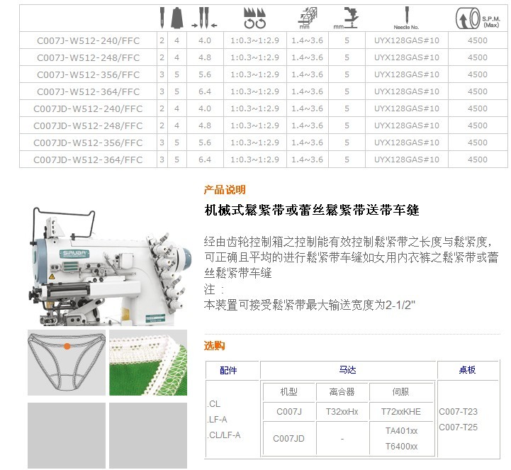 C007J-W512,C007JD-W512 機(jī)械式鬆緊帶或蕾絲鬆緊帶送帶車縫