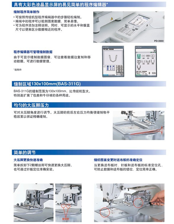 · 使用PD-3000程序編輯器,輕松創(chuàng)建,管理縫紉數據。