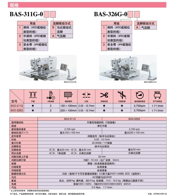 最高縫紉速度:2700rpm(使用3.5mm或3.5mm以下針距)