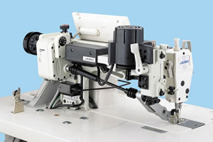 [接近型]機針與拖輪的間隔很近,轉(zhuǎn)彎處的角縫的小回轉(zhuǎn)性能更優(yōu)越。可利用機臺,易于決定縫制位置,提高了布料的安放性能。