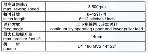 另外該機使用了自動抬壓腳和氣動拉筒等裝置,使其操作性能更佳,大大減輕了工人的勞動強度,從而提高工作效率。