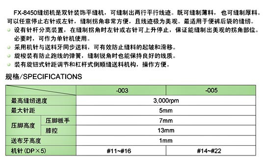 雙針平角縫縫紉機      商品編號:FX-8450