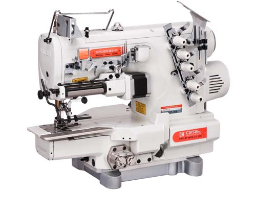 經(jīng)由電子控制箱之?dāng)?shù)位設(shè)定,能有效控制松緊帶的長度與松緊度,可正確且平均的進(jìn)行松緊帶車縫如女用內(nèi)衣褲之松緊帶或蕾絲松緊帶車縫 注 : 本裝置可接受松緊帶最大輸送寬度為2-1/2"