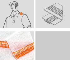 適宜中厚至厚布料經(jīng)四線拷克車縫后再包縫,用于運(yùn)動(dòng)服、休閒服等包飾縫,在針板前端有導(dǎo)引器能把直縫的針跡,均勻分開(kāi)增加車縫的美觀