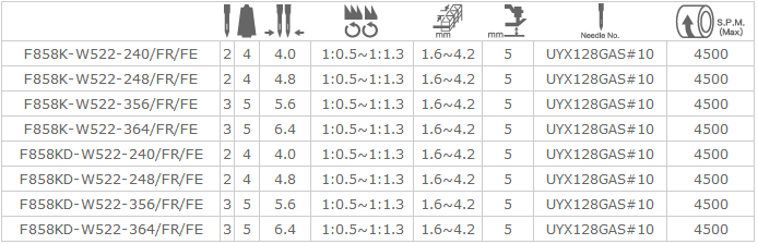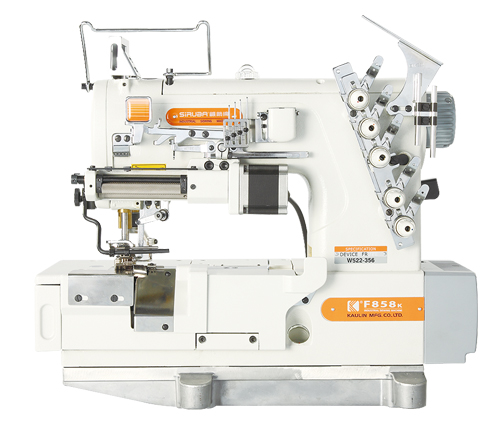 經(jīng)由電子控制箱之?dāng)?shù)位設(shè)定能有效控制松緊帶之長度及松緊度,可正確且平均的進(jìn)行松緊帶車縫,附右切刀修布裝置,能于車縫前將布修齊,更能提高車縫品質(zhì),如女用內(nèi)衣褲之松緊帶或蕾絲松緊帶車縫