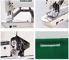 高速機(jī)械式平縫套結(jié)車 . 最高縫速2000針/分鐘,可提高縫制效率 . 大幅度減少腳踏板的壓力,可減輕操作者疲勞 . 更寬廣的縫制空間,且押腳提升量最大可達(dá)17mm,易于縫制物料之置入與取出 . 可達(dá)成低張力的縫制效果,且切線效果良好, 因而時(shí)現(xiàn)高質(zhì)量的縫制作業(yè)