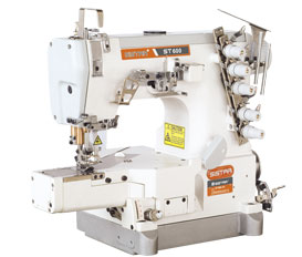 本機為ST600系列基本型,兩面裝飾上下差動輸送三針小方頭式繃縫機,基本型,繃縫與折縫于一體,大大提高了工作效率,擴大了用途范圍,并且,采用獨立驅(qū)動上下差動輸送機構(gòu),上送布牙更準確地輸送布料,防止了縫紉錯位。