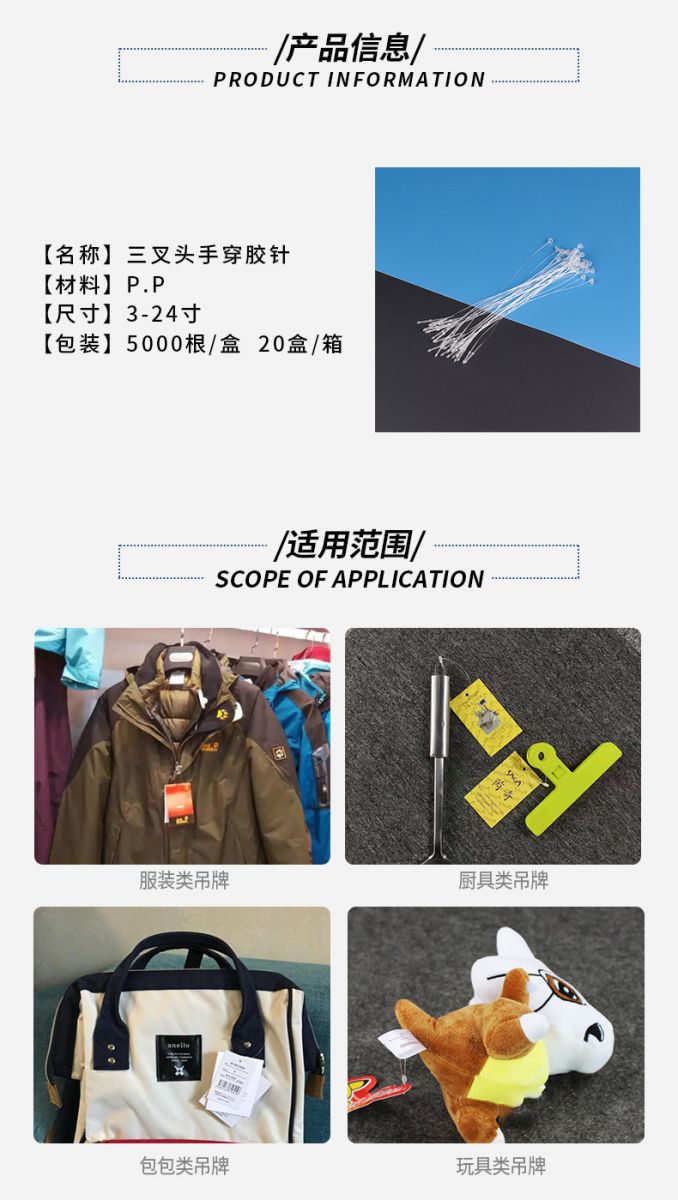 三叉頭手穿膠針子母扣膠針