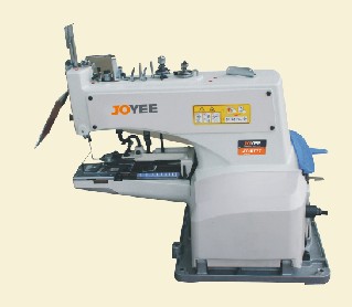 可簡單的進行從4孔到2孔,鈕扣孔之間的間隔以及針數8-16針等縫制規(guī)格的變更。而且,即使是鈕扣孔之間變更,也可 通過扳手操作簡單地進行變更。 通過采用抬壓腳以及連動的簡潔的切線機構,可使線殘量減少,能得到優(yōu)美的縫制。 即使是每分鐘1500針的高速運轉,也能進行穩(wěn)定的縫制,單獨地預備停止裝置,減緩了停止時的沖擊力,能施行優(yōu)美且正確的包扣縫制。