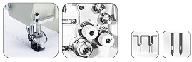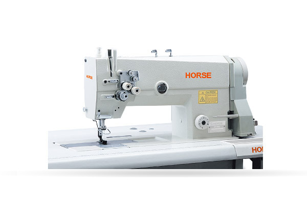 本機采用雙直針、立式自動加油,旋梭勾線,滑桿挑線,構成兩行雙線鎖式線跡;針桿采用機械式分離與聯合,上下軸采用滾珠軸承,同步齒形帶傳動,柱塞式油泵潤滑系統(tǒng),采用針桿擺動與送布牙同步送料方式,旋鈕式標盤調節(jié)針距和杠桿式倒順送料機構,在梭芯內的縫線回拉彈簧,保證底線與面線得到一致的縫紉效果,適用縫制大衣、制服、牛仔褲、包袋、裝飾縫等。