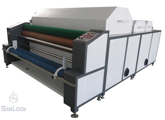 1、蒸汽預縮布料自動恒溫烘干區(qū),真空抽吸冷卻搖擺折疊布匹。
