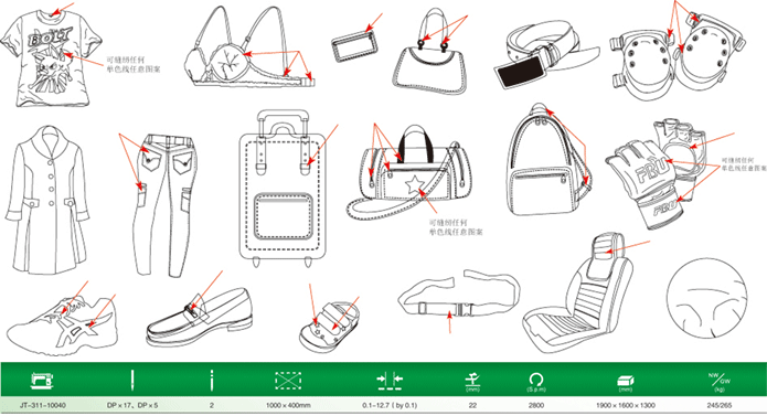 該機(jī)廣泛應(yīng)用于各類皮具,皮革制品、箱包、鞋類、手套、牛仔服裝、手提袋、體育用品、汽車安全帶等特殊部分的縫制,縫制效果優(yōu)異:線跡精確、整潔美觀,同時(shí)智能化自動(dòng)操作,無需人工干預(yù)即可自主完成預(yù)設(shè)的縫制程序,極大的提高了工作效率和產(chǎn)品品質(zhì)。