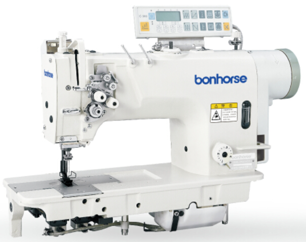 本機采用雙直針、立式自動加油,旋梭勾線,滑桿挑線,構(gòu)成兩行雙線鎖式線跡;針桿采用機械式分離與聯(lián)合,上下軸采用滾珠軸承,同步齒形帶傳動,柱塞式油泵潤滑系統(tǒng),采用針桿擺動與送布牙同步送料方式,旋鈕式標(biāo)盤調(diào)節(jié)針距和杠桿式倒順?biāo)土蠙C構(gòu),在梭芯內(nèi)的縫線回拉彈簧,保證底線與面線得到一致的縫紉效果,適用縫制大衣、制服、牛仔褲、包袋、裝飾縫等。