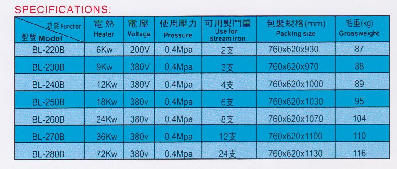 熱門產(chǎn)品: BL-200A 平面除污機(jī)   BL- 牛仔松布機(jī)   BL-300A 300B 直立式除漬機(jī)   BL-400A管狀除污機(jī)   BL-120A 橋式熨床(右向)