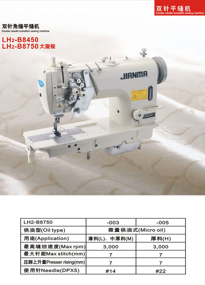 采用機(jī)針與送料牙同步送料,可有效防止縫料的起皺和滑移。適用于高質(zhì)量的雙線跡明縫和裝飾縫工序。