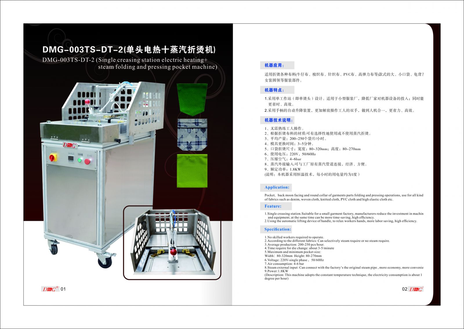 DMG-003TS-PT-2單頭電熱+蒸汽折燙機