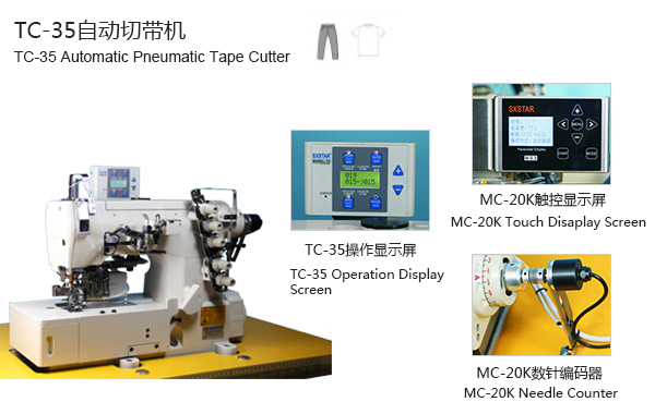 應(yīng)用場景:針織服裝的圓領(lǐng)部位縫制、下擺鎖口包邊,胸圍泳衣肩帶,西褲牛仔褲褲耳的自動(dòng)定長切斷。