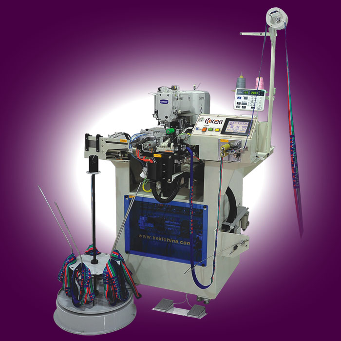 KEKI高速自動(dòng)拼接橡筋機(jī)XJ-311H智能化電子眼代替人眼識(shí)別橡筋帶logo及字母位置,精準(zhǔn)對(duì)齊。高速自動(dòng)化一次性完成剪裁、拼接、多針縫制和自動(dòng)收料,實(shí)現(xiàn)高產(chǎn)能。