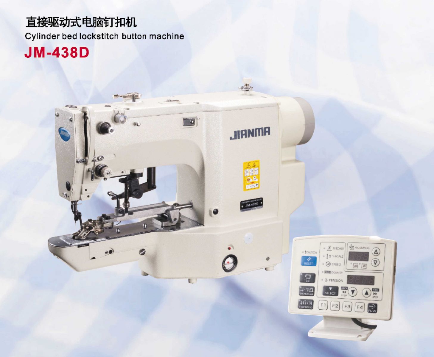 Max Sewing speed 3200rpm(JM-438D) further enhanced production efficiency easy and exact orientation of sewing material, presser foot device controlled bu impulse motor, and height of presser foot set lor 2 stages to achieve easy sewing malerial orienlaslion and reduced set time, and press operating padel slightly, its response is very good and noise is much more reduced as well.