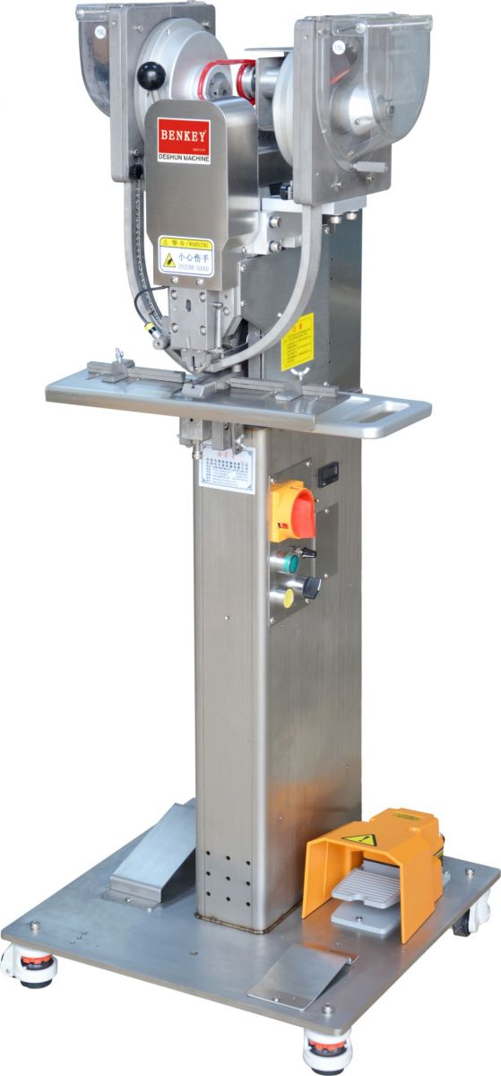 把鈕扣放進(jìn)對(duì)應(yīng)的4個(gè)料斗,開機(jī)會(huì)自動(dòng)轉(zhuǎn)動(dòng)料斗,自動(dòng)把鈕扣排滿軌道,自動(dòng)把鈕扣送到上下模具,電動(dòng)伺服馬達(dá)帶動(dòng),只要踩下踏腳開關(guān)便可裝訂自如,簡(jiǎn)單易用。上下模具對(duì)向運(yùn)動(dòng),穿透力好。更換配件可以裝訂其它鈕扣。