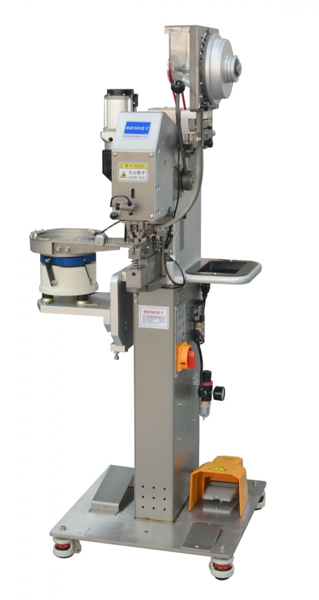 把鈕扣放進(jìn)對應(yīng)的2個料斗,開機(jī)會自動轉(zhuǎn)動料斗,自動把鈕扣排滿軌道,自動把鈕扣送到上下模具,伺服電機(jī)驅(qū)動,只要踩下晴腳開關(guān)便可裝訂自如,簡單易用。更換配件可以裝訂其它鈕扣。