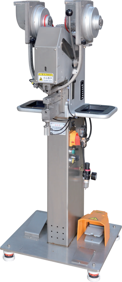 把鈕扣放進(jìn)對(duì)應(yīng)的2個(gè)料斗,開(kāi)機(jī)會(huì)自動(dòng)轉(zhuǎn)動(dòng)料斗,自動(dòng)把鈕扣排滿軌道,自動(dòng)把鈕扣送到上下模具,何服電機(jī)驅(qū)動(dòng),只要踩下踏腳開(kāi)關(guān)便可裝訂自如,簡(jiǎn)單易用。更換配件可平裝訂其它鈕扣。